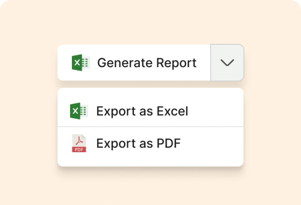 Export all the reports in pdf, csv and excel format.